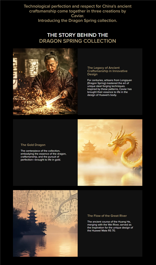 Dubai luxury brand manufacturer Caviar recently launched customized versions of Huawei Mate 70 RS and Huawei Mate X6, incorporating traditional Chinese cultural elements into the body design, bringing a new “Dragon Spring” series.