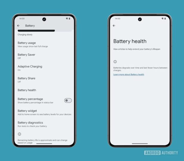 With the Android 14 QPR2 Beta 2 update, Google introduced the ability to view the estimated battery health percentage on Pixel devices. This feature shows the battery’s current full charge capacity compared to its original capacity.