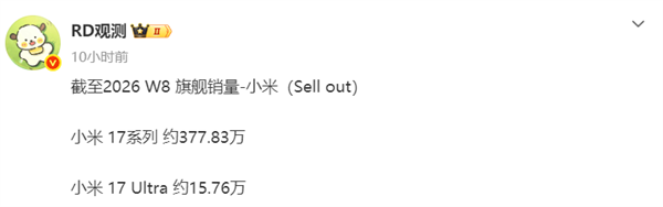 In this statistic, in addition to the overall sales of 3.7783 million units for the Xiaomi 17 series, its Ultra version alone sold 157,600 units.