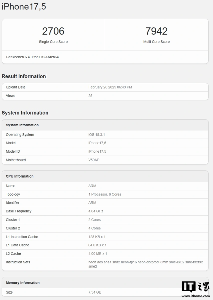 The iPhone 16e, identified under the model name “iPhone17,5,” is powered by Apple’s latest A18 Bionic processor. The device comes equipped with 8GB of RAM and runs on the iOS 18.3.1 operating system. Early performance testing conducted on Geekbench 6.4.0 has revealed impressive results, with the phone achieving a single-core score of 2706 and a multi-core score of 7942. These metrics highlight the device’s capability to handle demanding tasks with ease, ensuring a smooth user experience.