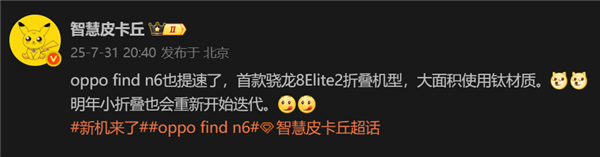 In addition, OPPO Find N6 Flip is expected to be equipped with Qualcomm Snapdragon 8 Elite 2 processor, which will be the world’s first folding phone to use this chip.
