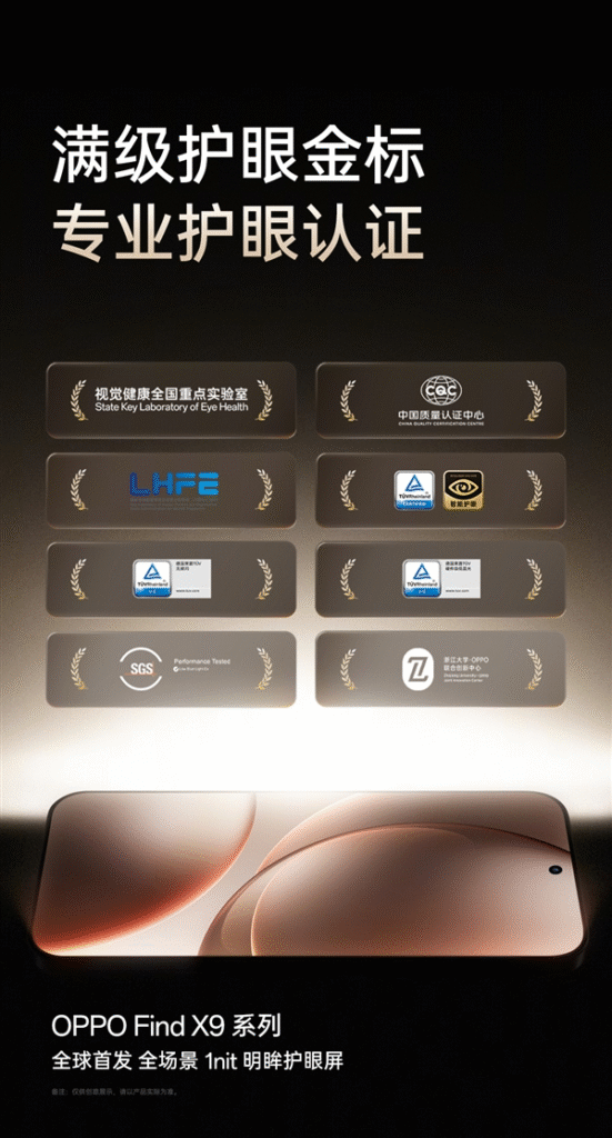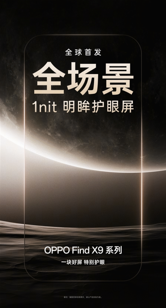 According to official information, the OPPO Find X9 series screen was jointly created by OPPO and Tianma, and it is the industry’s first full-scene 1nit bright eye protection screen.