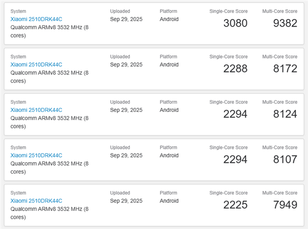 Xiaomi mobile phone model “2510DRK44C” recently appeared in the GeekBench database.