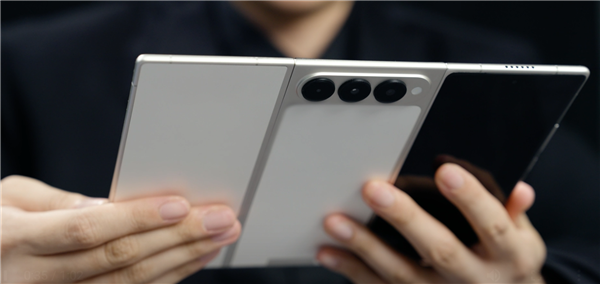 In terms of ID design, the phone is equipped with dual hinges and adopts a C-shaped inward folding design, which is different from the Z-shaped folding solution of Huawei Mate XT.