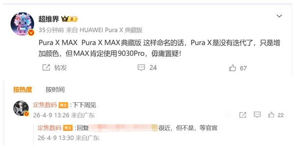 The first Kirin 9030 Pro foldable phone is coming! Huawei Pura X Max to be released in late April.