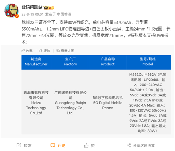 According to the blogger Digital Chat Station, Meizu 22 has obtained all three certificates and is waiting to be launched on the market.