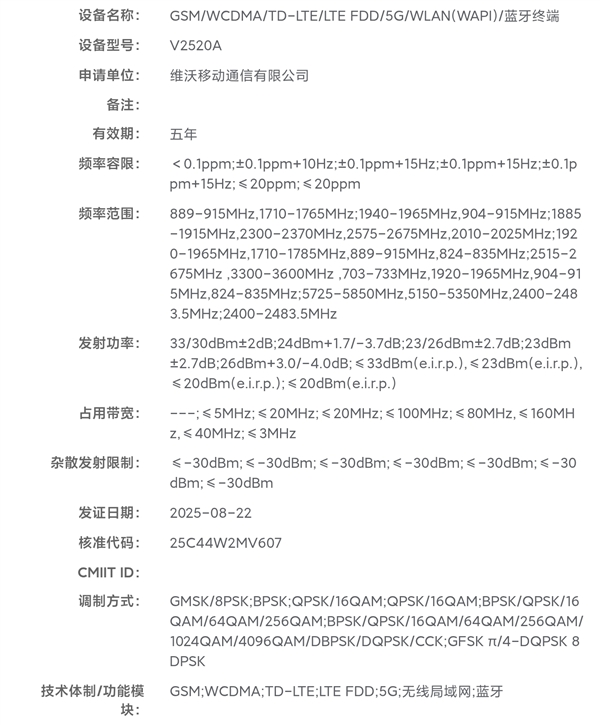 The iQOO Neo11 series obtained network access permission, model number is V2520A, and the series will be officially launched in Q4 this year.