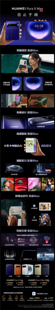 On April 20th, at the Huawei Pura series and all-scenario new product launch event, the world’s first large folding screen phone—the Huawei Pura X Max—will be officially unveiled.