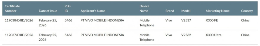 The model number of the vivo X300 Ultra has been officially confirmed following it’s certification in Indonesia by SIRIM. The documentation shows that the X300 Ultra carries the model number V2562. During the same certification process, the X300 FE was also approved with the model number V2537. These certification indicate that both smartphones could be released soon.